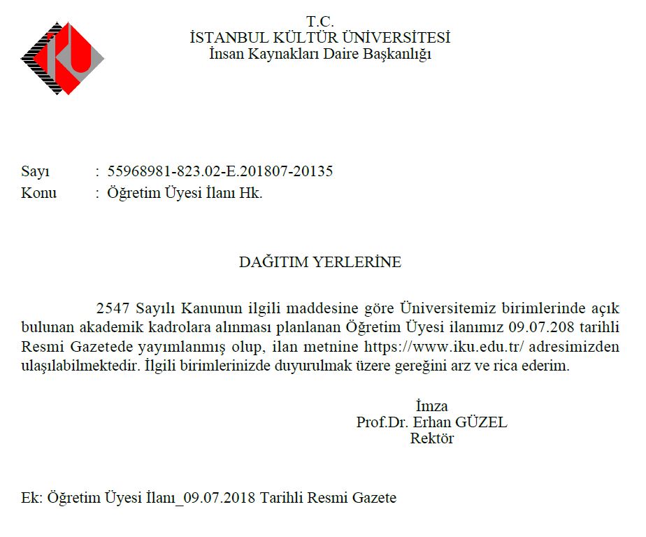 Ana Sayfa / Duyurular / Öğretim Üyesi İlanı