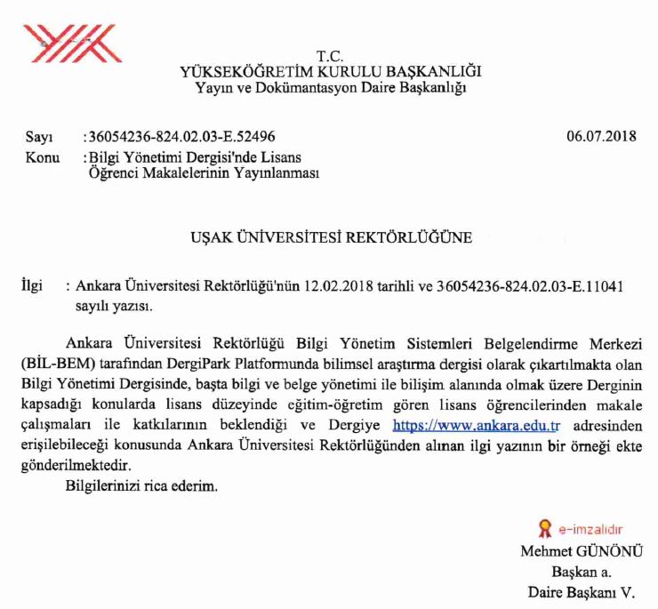 Ana Sayfa / Duyurular / Bilgi Yönetimi Dergisi'nde Lisans Öğrenci Makalelerinin Yayınlanması