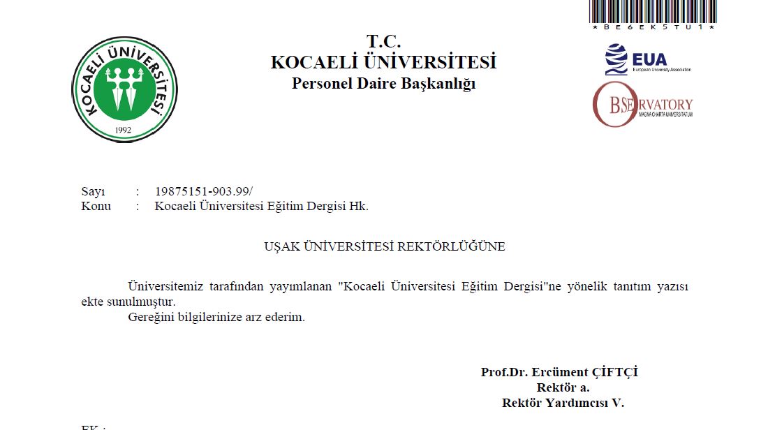 Kocaeli Üniversitesi Eğitim Dergisi Hk.