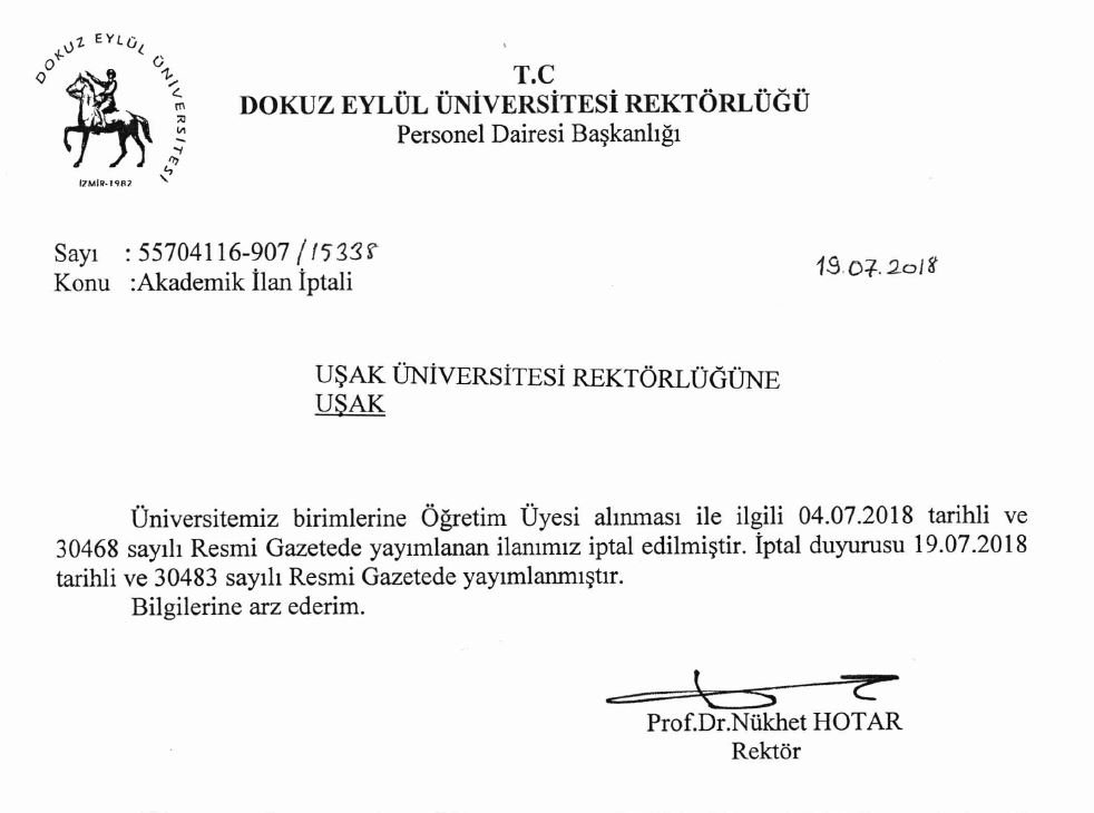 Ana Sayfa / Duyurular / Akademik İlan İptali
