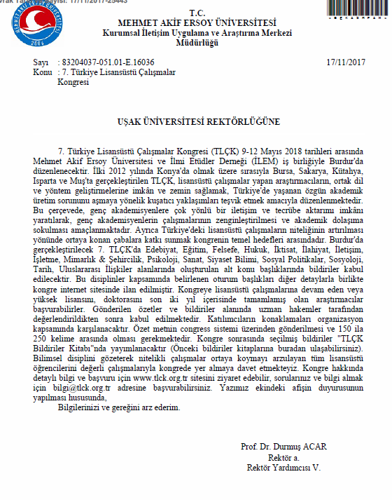 Ana Sayfa / Duyurular / 7. Türkiye Lisansüstü Çalışmalar Kongresi