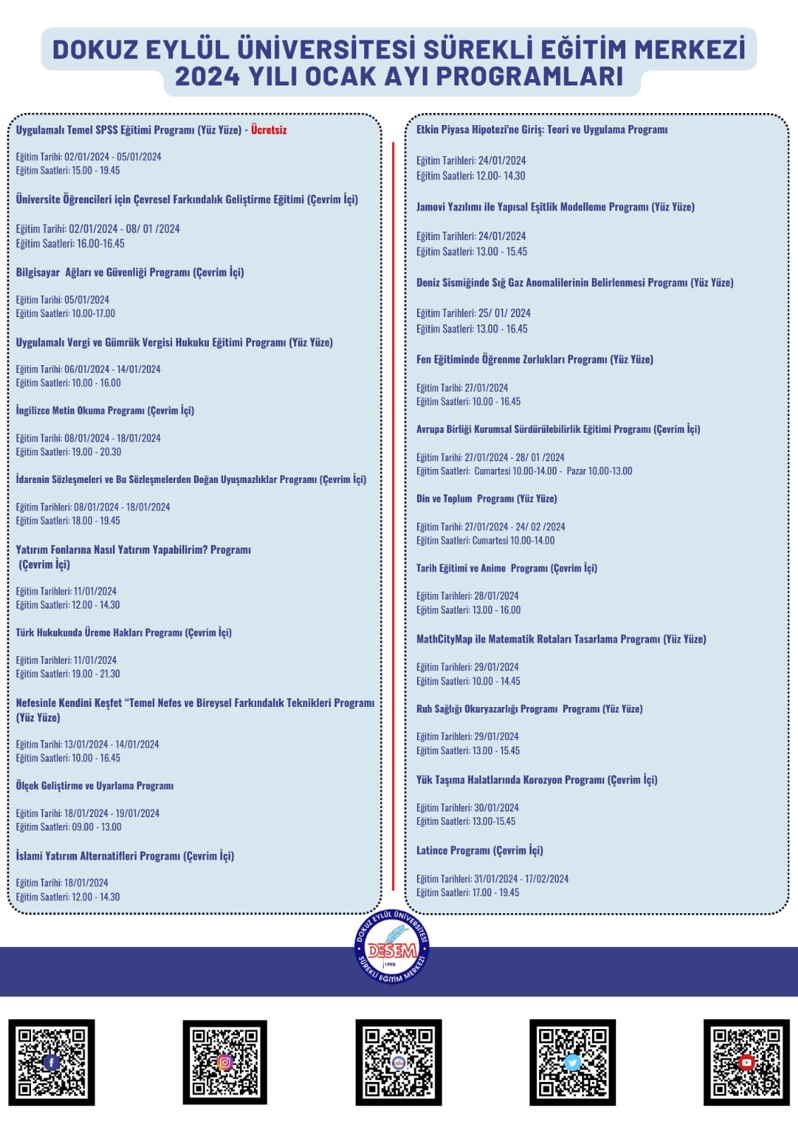 Dokuz Eylül Üniversitesi Sürekli Eğitim Merkezi 2024 Yılı Ocak Ayı Eğitim Programlar