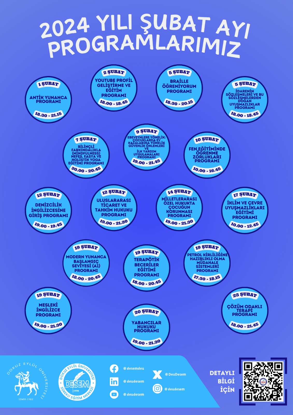 Dokuz Eylül Üniversitesi Sürekli Eğitim Merkezi 2024 Yılı Şubat Ayı Programları