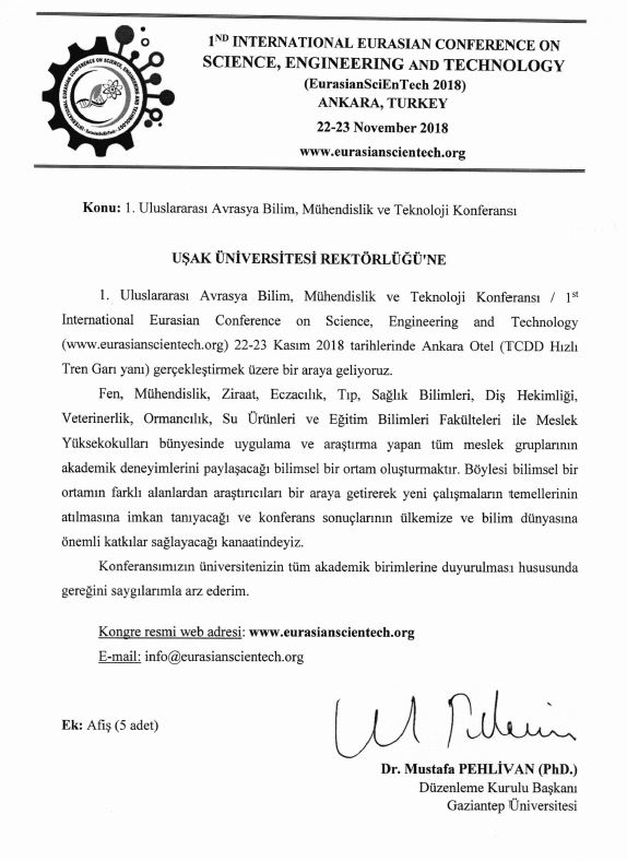 Ana Sayfa / Duyurular / 1. Uluslararası Avrasya Bilim, Mühendislik ve Teknoloji Konferansı