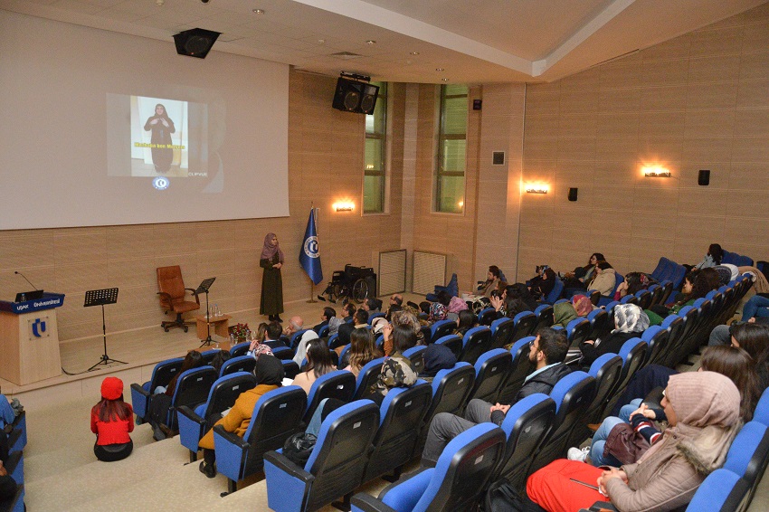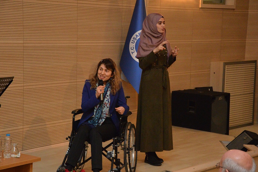 Programda gerçekleşen sesli sunumlar Uşak İl Müftülüğünde görevli Gülcan Yeşilova tarafından işaret diline çevrildi.