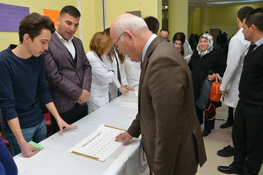 Program Rektör Savaş’ın Dr. Öğr. Üyesi Şule Güçyeter ve Dr. Öğr. Üyesi Rasmiye Nalan Ayvazoğlu’na teşekkür plaketi takdim etmesiyle son buldu. Programın ardından Mustafa Kemal Paşa Amfisi Fuaye alanından Dünya Engelliler Günü sebebiyle; Özel Eğitim Topluluğu, ÖSYM Birimi, Erasmus Ofisi ve Uşak Tıp Öğrencileri Topluluğu stant açtı. Alanda Uşak Üniversitesi öğrencilerinin hazırladığı resim sergisi de yer aldı. Rektör Savaş stantları tek tek gezerek bilgi aldı. Fen Edebiyat Fakültesi Sosyoloji Bölümü Öğrencisi görme engelli Uğur İlhan, Cahit Sıtkı Tarancı’nın ‘Memleket İsterim’ şiirini özel olarak Rektör Savaş’a okudu.