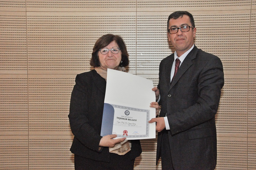 ‘Tarım Arazisi Kaybı’, ‘Erozyon’, ‘İklim Değişiklikleri’, ‘En Önemli Küresel Risk’ başlıklı konular hakkında bilgi veren Aksoy, gıda, tarım, su gibi konularda hangi önlemlerin alınması gerektiğini aktardı. Programın sonunda Fen Bilimleri Enstitüsü Müdürü Doç. Dr. Murat Kemal Karacan Prof. Dr. Aysoy'a üniversite adına teşekkür belgesi takdim etti.