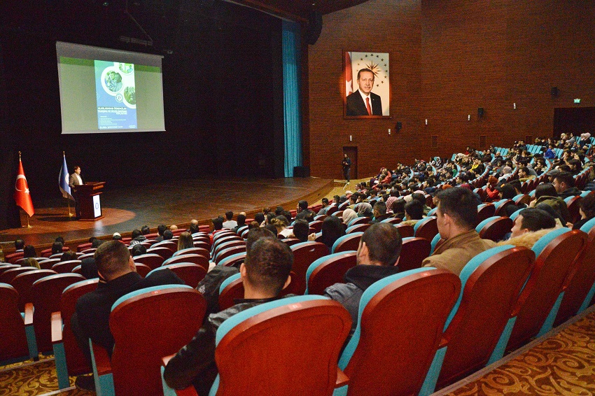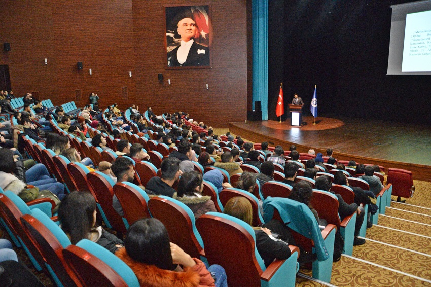 İl Göç İdaresi Müdürlüğü adına konuşma yapan Fatih Demirel ve Hatice Şahin Karadağ ise kendilerine en çok yöneltilen sorulardan birinin oturma ve çalışma izni olduğunu anlatarak, yabancı öğrencilere ikamet ve çalışma izni konusunda bilgiler verdi.