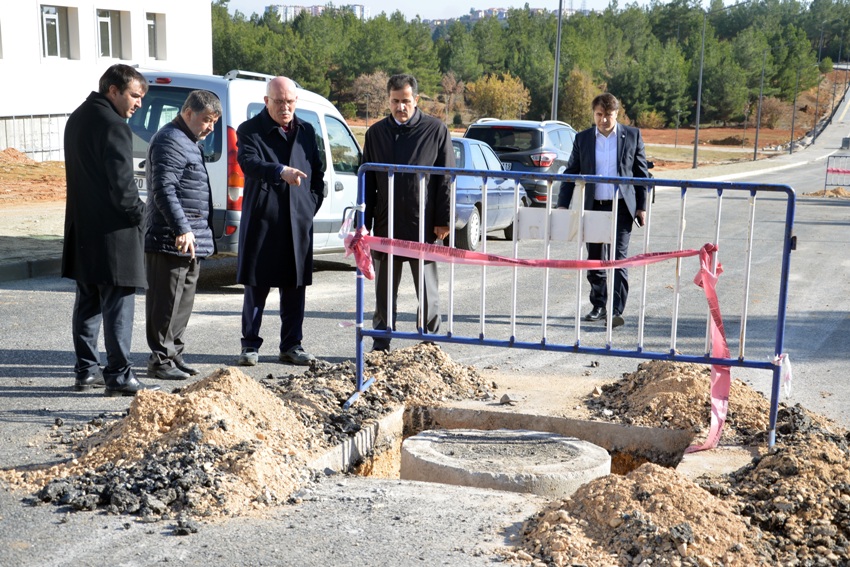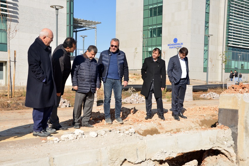 Uşak Üniversitesi Rektörü Prof. Dr. Ekrem Savaş, kampüste yapımı devam eden inşaat alanlarında incelemelerde bulunarak yetkililerden bilgi aldı.
