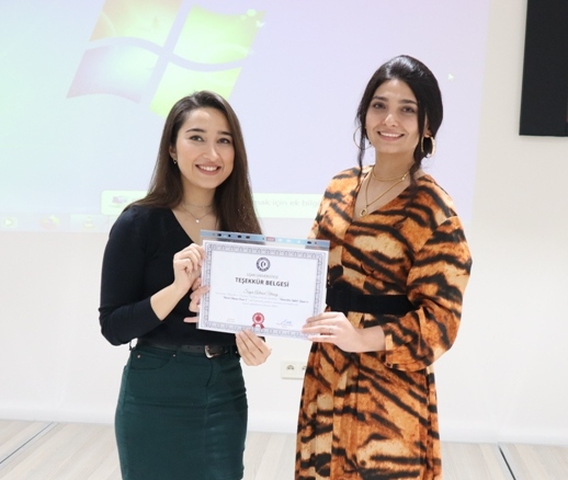 Konferansta Diyetisyen Aslınur Ulusoy, Uzman Psikolog Tansu Gülden Gül ve Makyaj Uzmanı Zeynep Duygu Sarı, uzmanlık alanlarıyla ilgili bilgiler aktardı. Konferans sonunda konuşmacılara teşekkür belgesi verildi.