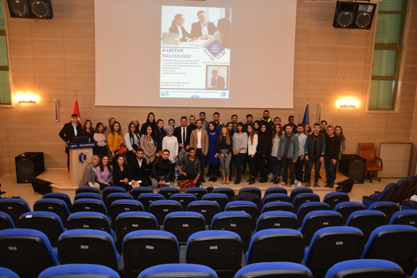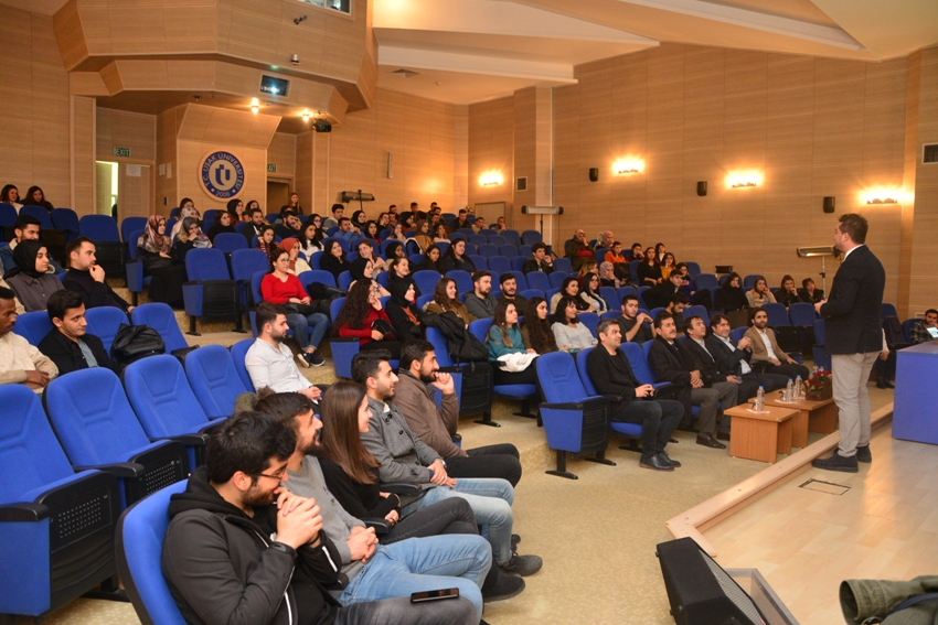 Mustafa Kemal Paşa Amfisinde yapılan etkinliğe Rektör Yardımcıları Prof. Dr. Adem Duru ile Prof. Dr. Metin Gümüş, Genel Sekreter İbrahim Çalış, Mezunlar Ofisi ve Kariyer Geliştirme Koordinatörü Dr. Öğretim Üyesi Eser Yeşildağ, akademisyenler ve çok sayıda öğrenci katıldı.