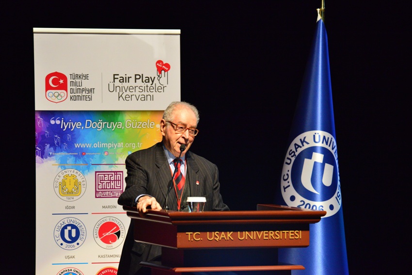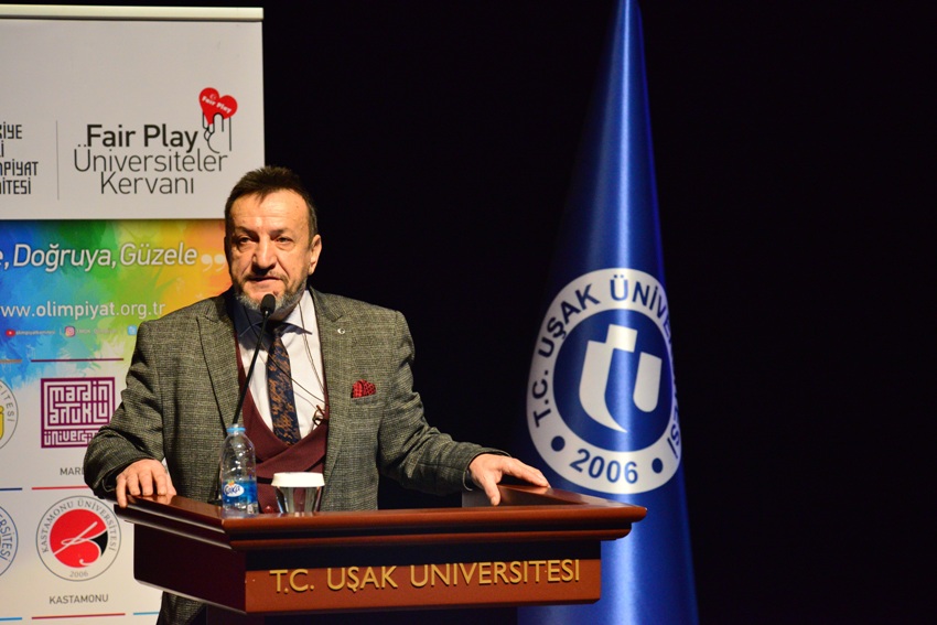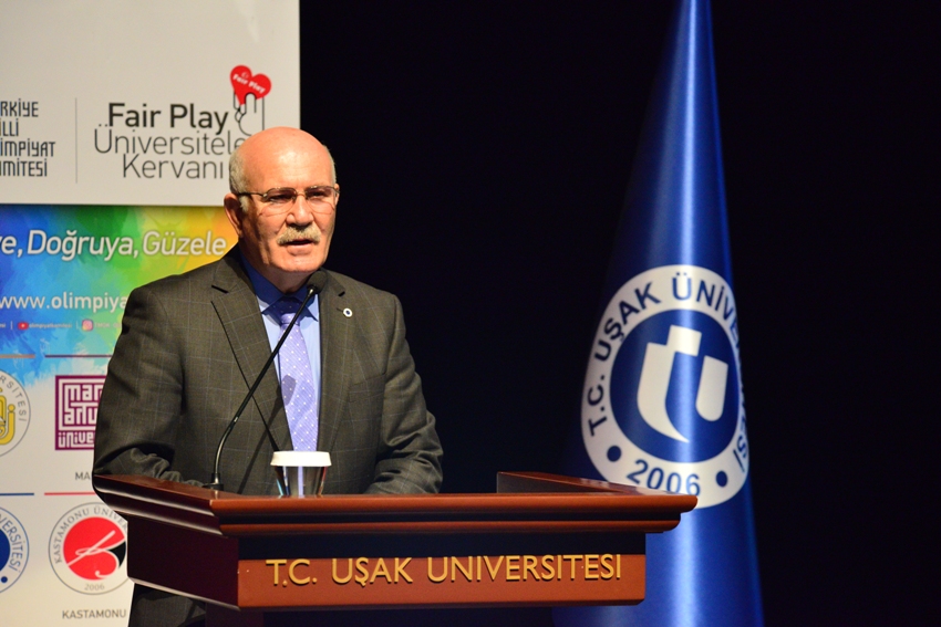 Türkiye Milli Olimpiyat Komitesi Fair Play Komisyonu üyelerine ve programın hazırlanmasında emeği geçen herkese teşekkür eden Prof. Dr. Savaş, böylesi önemli bir programa ev sahipliği yapmaktan gurur duyduğunu dile getirdi. Rektör Savaş, üniversitede gerçekleşen etkinliklerden örnekler vererek, sanata, bilime ve spora önem verildiğini ve bu tarz etkinliklerin gerçekleşmesi için ellerinden gelen gayreti gösterdiklerini vurguladı. Uşak Üniversitesi olarak, ulusal ve uluslararası sporun yaygınlaştırılması konusunda çalışmaları desteklediklerini belirten Savaş, “Dünya standartlarında spor merkezlerimizle bölgemize ve ülkemize hizmet etmeye devam edeceğiz.” ifadelerini kullandı. Açılış konuşmalarının ardından, TMOK Fair Play Komisyonu Başkanı Arıpınar tarafından Rektör Prof. Dr. Ekrem Savaş’a şilt takdim edildi.