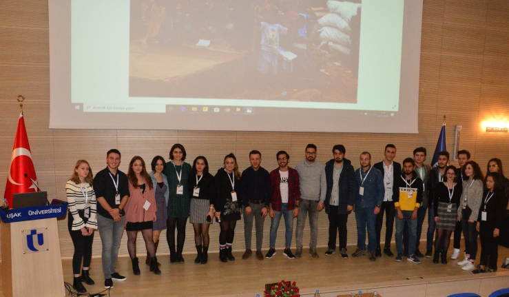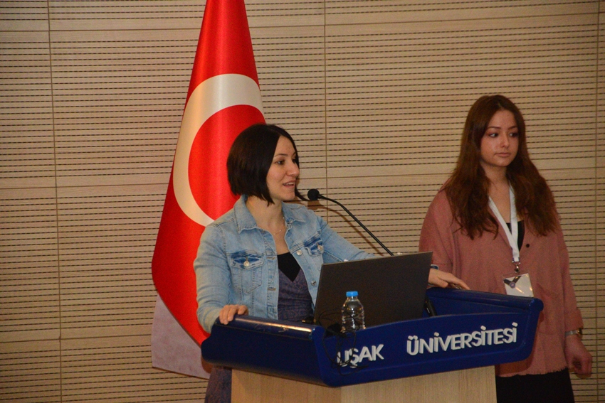 Konuşmaların ardından Uşak Üniversitesi adına teşekkür plaketi, topluluk başkanı Özlem Kara tarafından verildi.