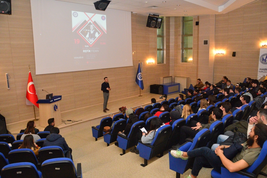 Danışman öğretim üyesi Dr. Anamur yaptığı konuşmada, topluluğunun kuruluşunun üzerinden iki sene geçtiğini hatırlatarak, “Topluluğumuzun buraya kadar gelmesinde katkısı olan tüm öğrencilere teşekkür ediyorum.” diye konuştu.