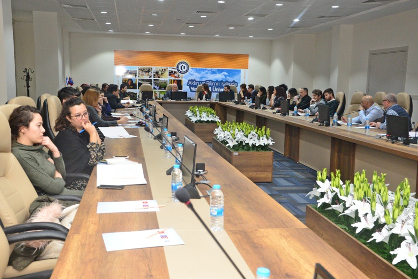 Toplantıya Rektör Prof. Dr. Ekrem Savaş, Rektör Danışmanı Uluslararası İlişkiler Ofisi Koordinatörü Dr. Öğr. Üyesi Özgür Tarhan ve Erasmus+ hareketliliğine hak kazanan personel katıldı.