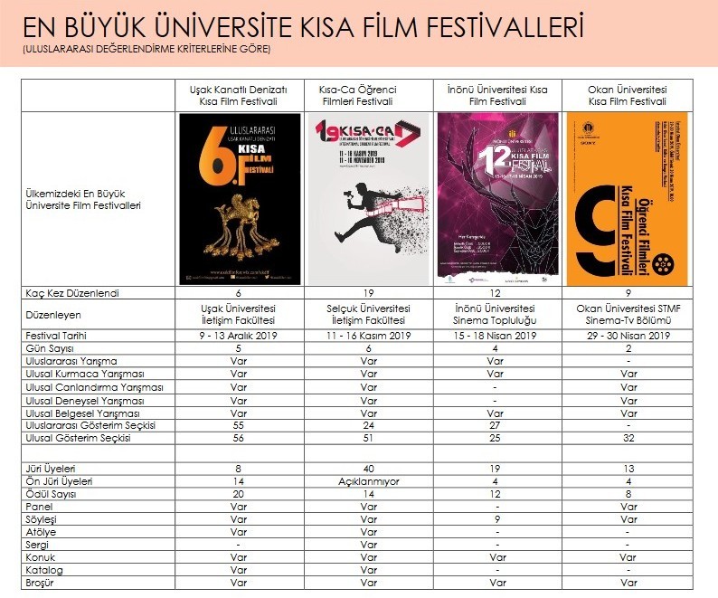 Ülkemizin en kapsamlı ve köklü sinema platformu Kamera Arkası’nın kurucusu Hayri Çölaşan’ın kaleme aldığı, 2018-2019 Yılı Festival Değerlendirmesi çalışmasında, 6. Uluslararası Uşak Kanatlı Denizatı Kısa Film Festivali bir kez daha Türkiye’nin en büyük üniversite festivali oldu. Değerlendirme kıstasları bakımından üniversite dışı festivallerle de yarışacak ölçekte bir etkinlik halini alan ve gösterime giren filmlerine tamamına telif ödeme gibi ilklere imza atan festivalin, bu yıl ilk defa “Ara Seçici Kurul” oluşturmasının önemi, Kamera Arkası'nca da vurgulandı. Bu yıl ayrıca üniversitemizde eğitim görmüş öğrencilerimizin elde ettiği toplam yedi ödül de raporda yer aldı.