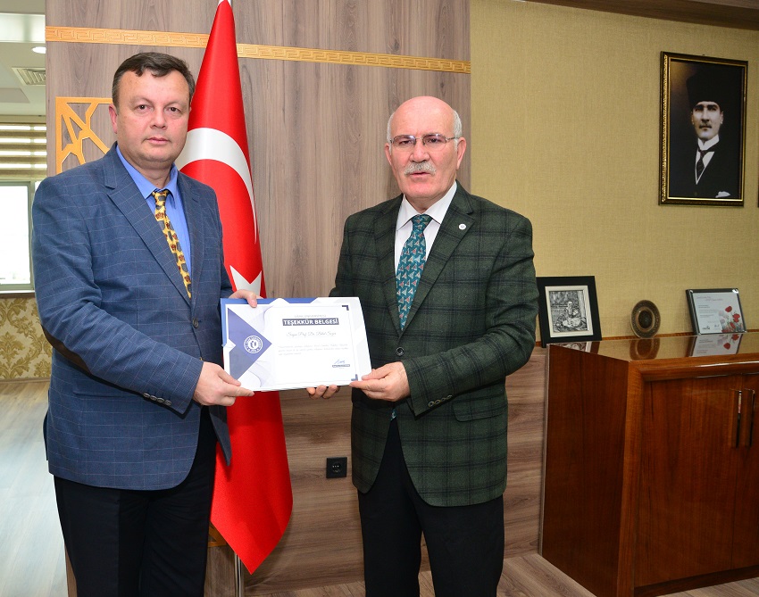 Uşak Üniversitesi Rektörü Prof. Dr. Ekrem Savaş, görevini başarıyla ifa eden Prof. Dr. Sezer’e teşekkür belgesi takdim ederek, bugüne kadar yaptığı çalışmalardan dolayı teşekkür etti.
