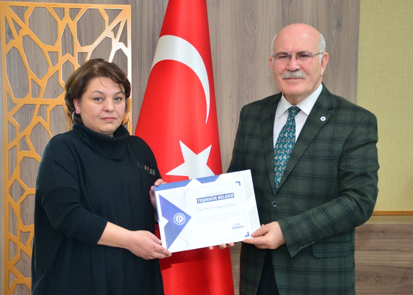Uşak Üniversitesi Rektörü Prof. Dr. Ekrem Savaş, görevini başarıyla ifa eden Prof. Dr. Korcan’a teşekkür belgesi takdim ederek, bugüne kadar yaptığı çalışmalardan dolayı teşekkür etti.