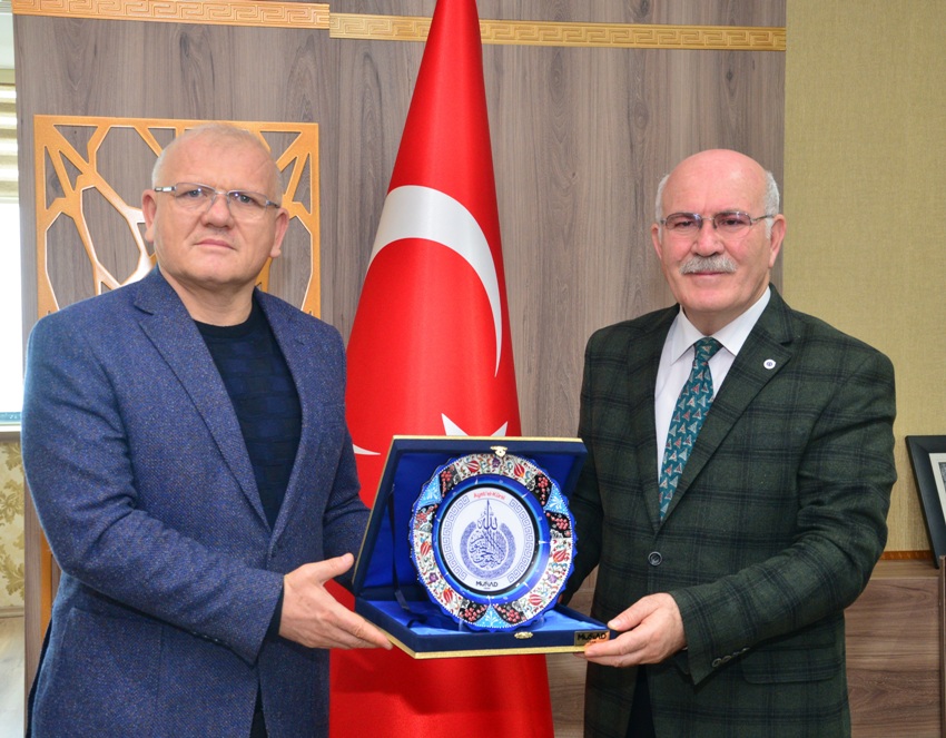 Müstakil Sanayici ve İşadamları Derneği (MÜSİAD) Uşak Şube Başkanı İbrahim Yıldırım ve dernek üyeleri Rektör Prof. Dr. Ekrem Savaş’ı makamında ziyaret etti.