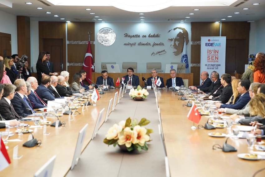 Ege Üniversitesi koordinatörlüğünde 20-21 Mart tarihlerinde yapılacak olan Ege Bölgesi Kariyer Fuarı’nın (EGEKAF) “Tanıtım Toplantısı” EÜ Yeni Senato Salonunda yapıldı. Ege Üniversitesi Rektörü Prof. Dr. Necdet Budak’ın başkanlığında gerçekleşen toplantıya Cumhurbaşkanlığı İnsan Kaynakları Ofisi Başkanı Doç. Dr. Salim Atay, İzmir Vali Yardımcısı Barış Demirtaş, İzmir Ticaret Odası Yönetim Kurulu Başkanı Mahmut Özgener, Uşak Üniversitesi Rektörü Prof. Dr. Ekrem Savaş, Uşak Üniversitesi Mezunlar Ofisi ve Kariyer Geliştirme Koordinatörü Dr. Öğretim Üyesi Eser Yeşildağ, Ege Bölgesi’ndeki üniversitelerin Rektörleri ile İzmir ve Ege Bölgesi’nden oda ve borsaların temsilcileri katıldı.