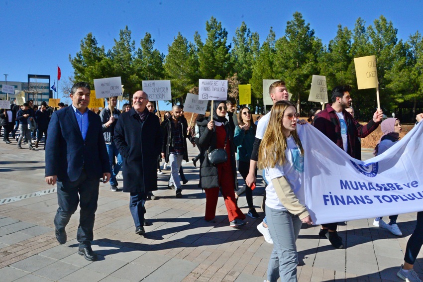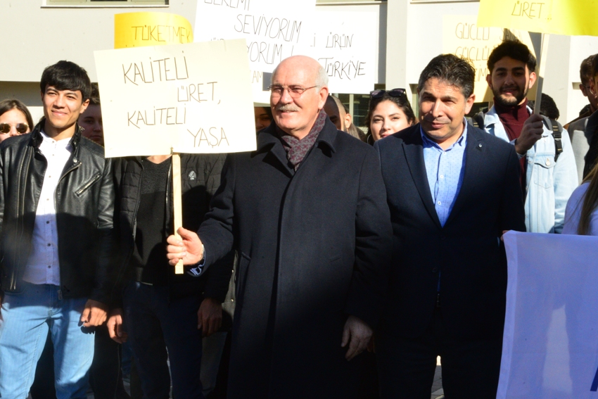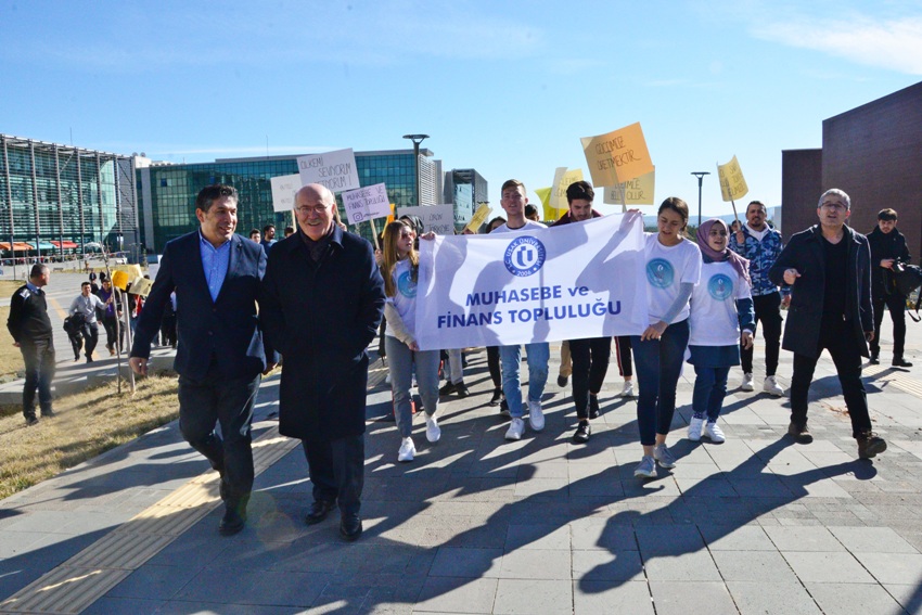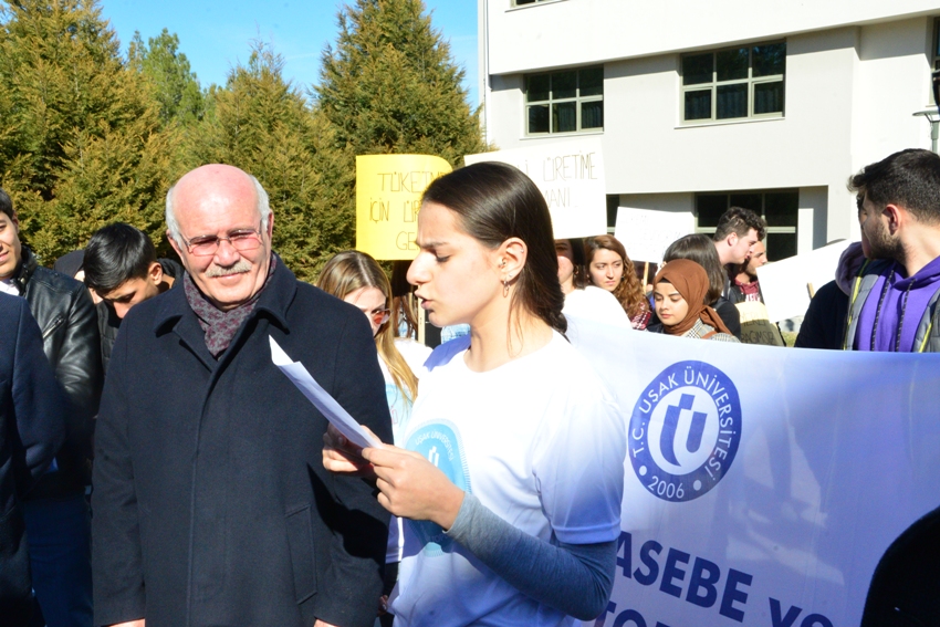 “Yerli Sanayiye Destek” amacıyla Uşak Üniversitesi Muhasebe ve Finans Topluluğu tarafından destek yürüyüşü düzenlendi. “Tüketmek için Üretmek Gerek, Yerli Üretim Güçlü Türkiye” sloganıyla düzenlenen etkinliğe, Uşak Üniversitesi Rektörü Prof. Dr. Ekrem Savaş’ın yanı sıra, çok sayıda akademik ve idari personel ile öğrenciler katıldı.
