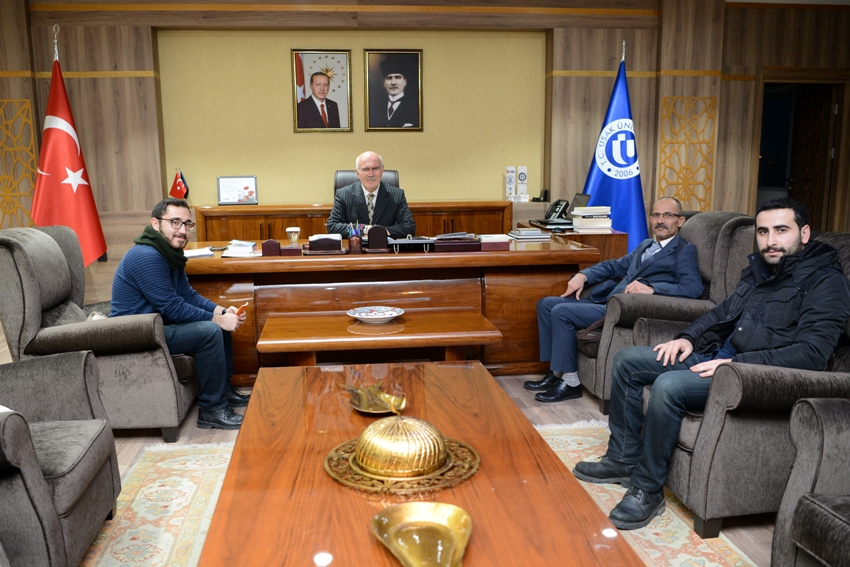 Rektörlük Makamında gerçekleşen ziyarette Satranç Federasyonu Uşak İl Temsilcisi Yusuf Orel, Üniversitemiz Satranç Topluluğu Başkanı Furkan Sallan ve Barış Yıldırım, Rektörümüzü yeni görevinden dolayı tebrik ederek, hayırlı olsun temennisinde bulundular.