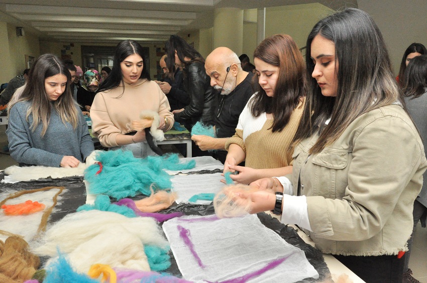 Selçuk Gürışık, Güzel Sanatlar Fakültesi Moda Tasarımı Bölümü Atölyesinde, keçe