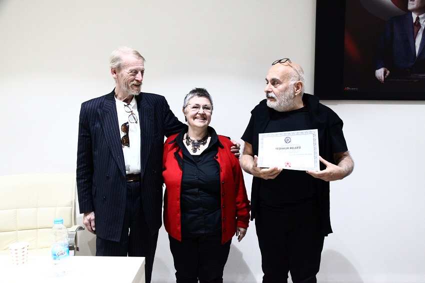 Etkinliğin sonunda Güzel Sanatlar Fakültesi Dekanı Prof. Dr. Şebnem Ruhsar Temir Gökçeli, Ian Padgett ve Dr. Selçuk Gürışık’a teşekkür belgesi takdim etti.