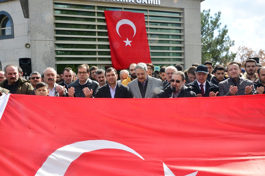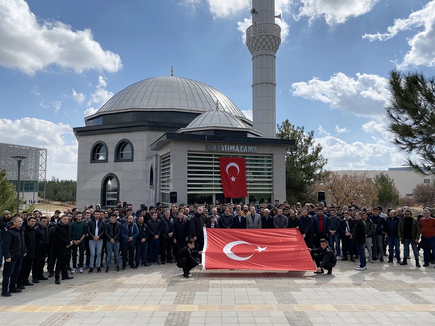 Uşak Üniversitesi Hz. Fatıma Camisinde kılınan Cuma namazı sonrası, Suriye’nin İdlib şehrinde rejim güçlerinin hain saldırısı sonucu şehit olan askerlerimiz için Hatim duası yapıldı.