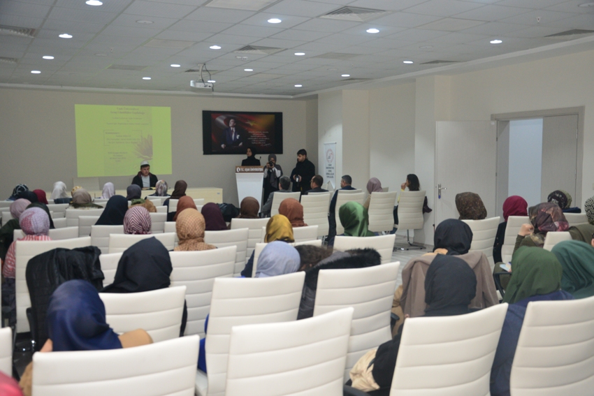 Kur'an-ı Kerim tilavetiyle başlayan programda, açılış konuşması yapan Dr. Öğretim Üyesi Ayşe Gültekin, 8 Mart Dünya Kadınlar Günü dolayısıyla yapmış oldukları etkinliğe katkı veren herkese teşekkür ederek, geleneklerden kaynaklı olarak kadının toplumda ikinci sınıf vatandaş olarak görülmesinin dinen uygun olmadığına, İslam’ın kadın-erkek eşitliğine büyük değer verdiğini belirtti.