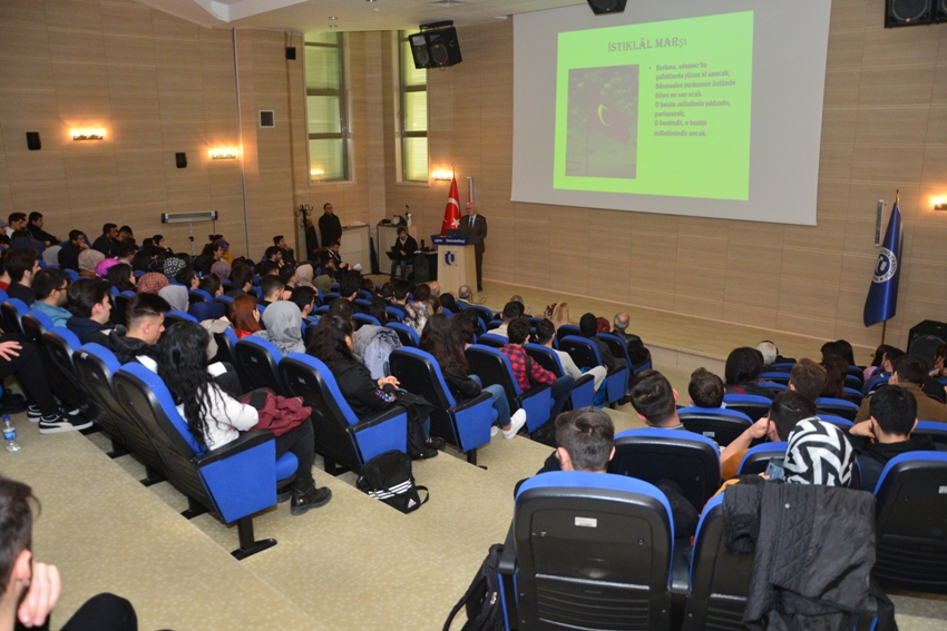 İstiklal Marşı’nın kabulünün 99. Yıldönümü nedeniyle Uşak Üniversitesi Atatürk İlkeleri ve İnkılâp Tarihi Araştırma ve Uygulama Merkezi tarafından, ‘Hakk’ın Sesi Mehmet Akif Ersoy ve İstiklal Marşı’ adlı konferans düzenledi.