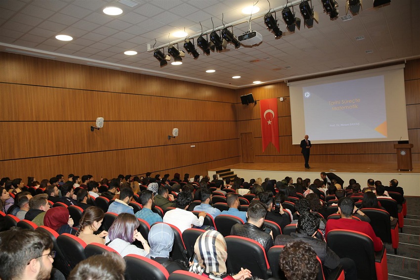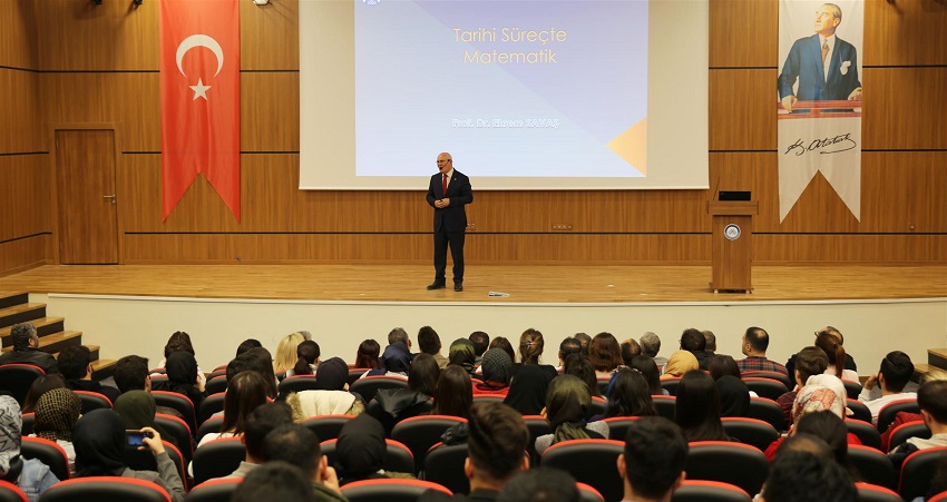 Daha sonra kürsüye gelen Prof. Dr. Ekrem Savaş, öğrencilere matematiğin tarihsel gelişimi hakkında bilgi verdi. “Ölümsüz olmak istiyorsanız matematikçi olmanız gerekir. Önceki asırlarda yaşayan çoğu isimler unutulmuşken bugün matematik bilimine katkı yapan tüm isimler ezberimizdedir.” sözleri ile hafızalara yer eden Savaş, konuşmasında kendi hayatından anekdotlar da aktardı.