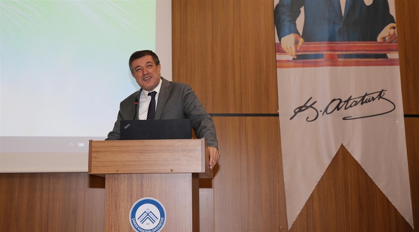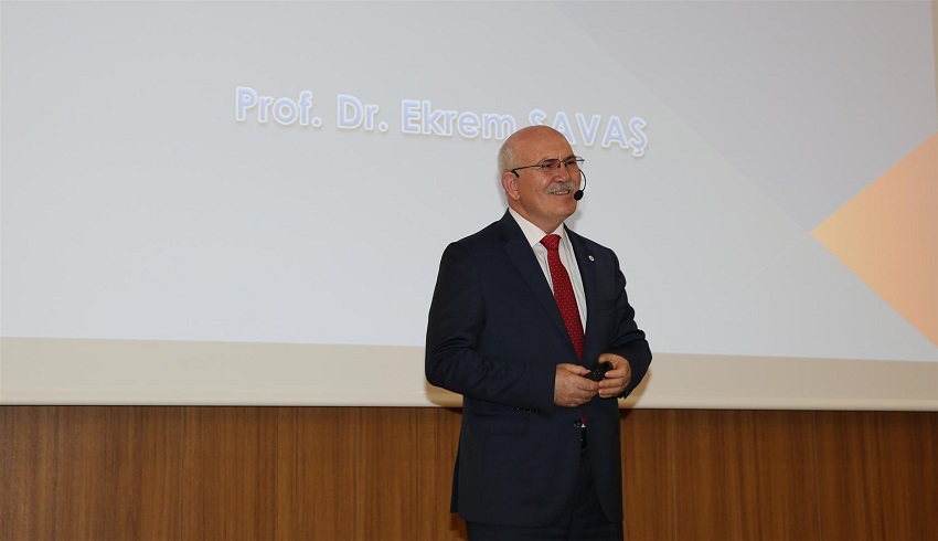 ÇAKÜ Rektörü Prof. Dr. Hasan Ayrancı, “Bugün hem mevkidaşım hem de Türkiye’nin en önemli bilim insanlarından biri olan Prof. Dr. Ekrem Savaş Hocamızı üniversitemizde misafir etmekten ve sizlerle buluşturmaktan son derece mutluyum. Kendisi yaptığı çalışmalarla gerçek bir akademisyen, tecrübe abidesi, aldığı ödüller, bulunduğu bilim merkezleri, yayınları ile gerçek bir bilim insanı ve gerçek bir rektördür. Hayatımızın her alanında gerekli olan ve her alanda karşımıza çıkan matematiği daha iyi anlayabilmek için bugün ben de sizinle birlikte, bir matematik dehası olan Sayın Hocamı can kulağıyla dinleyecek, istifade etmeye çalışacağım.” dedi.
