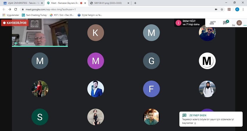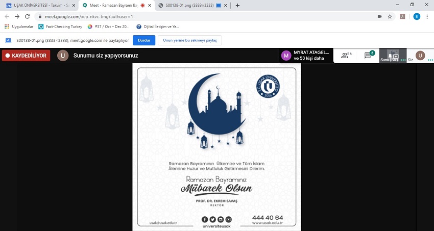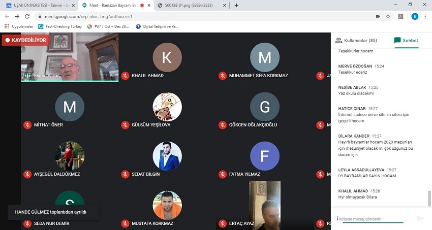Uşak Üniversitesi Rektörü Prof. Dr. Ekrem Savaş, öğrencilerle bayramlaşma merasimini dijital olarak gerçekleştirdi.