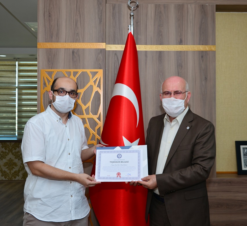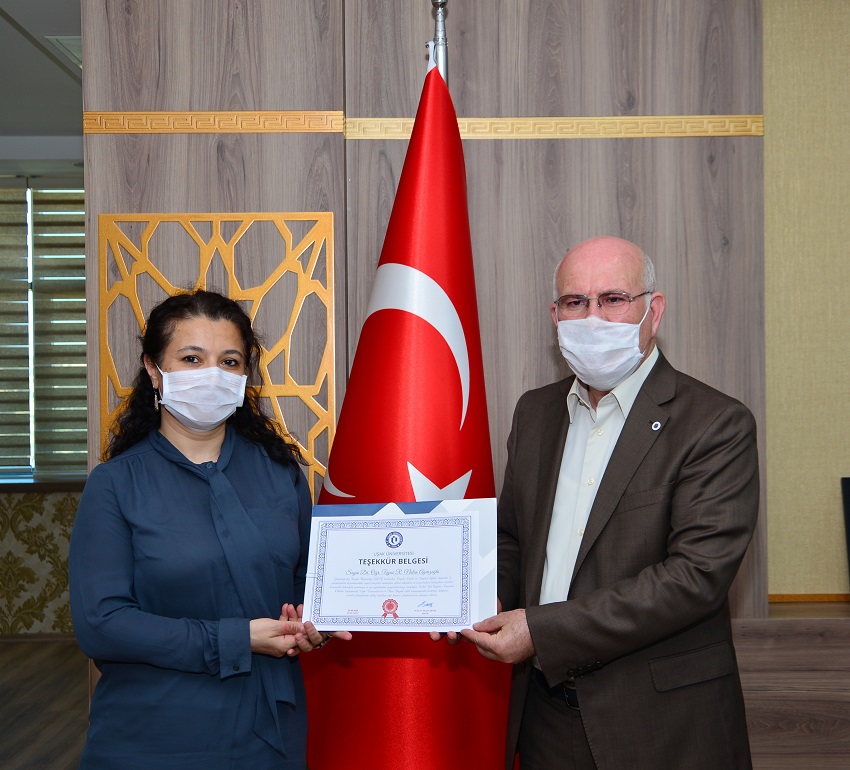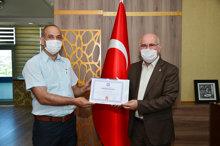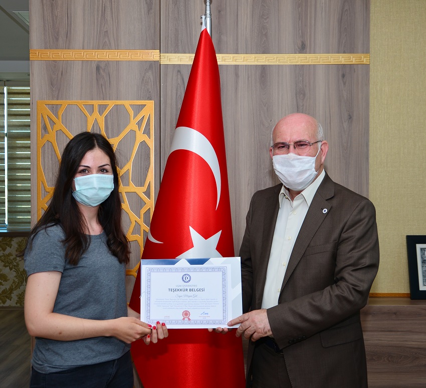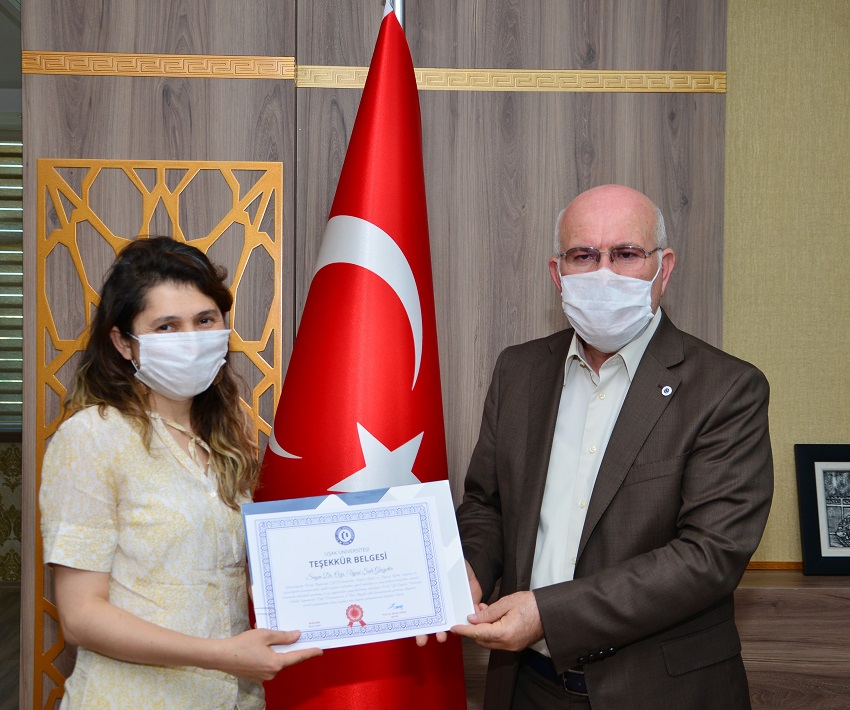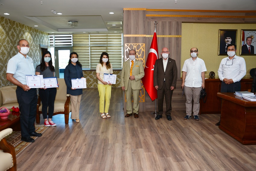 Engelsiz Birim Koordinatörü Dr. Öğr. Üyesi Şule Güçyeter, Koordinatör Yardımcısı Dr. Öğr. Üyesi R. Nalan Ayvazoğlu, Arş. Gör. Ahmet Göncü, Arş. Gör. M. Sait Baran, Bilgisayar İşletmeni Murat Sağlam ve Sağlık Kültür ve Spor Daire Başkanlığı Sosyal Hizmet Uzmanı Meryem Gül’e teşekkür belgelerini takdim eden Prof. Dr. Savaş, “Yükseköğretim Kurulu Başkanlığı (YÖK) tarafından, “Engelsiz Erişim” ve “Engelsiz Eğitim” sloganları ile yükseköğretim kurumlarındaki engelli bireylerin mekânlara, eğitsel imkânlara ve sosyo-kültürel faaliyetlere erişimleri konusunda farkındalık yaratmayı ve iyi uygulamaları yaygınlaştırmayı amaçlayan “2020 Yılı Engelsiz Üniversite Ödülleri” kapsamında üniversitemizin, tüm üniversitelere verilen 17 bayrak ödülünden 4 Mavi Bayrak ödülünü kazanmasında göstermiş oldukları özverili çalışmalardan dolayı teşekkür ediyorum. Başarılı çalışmalarının devamını diliyorum.” dedi.