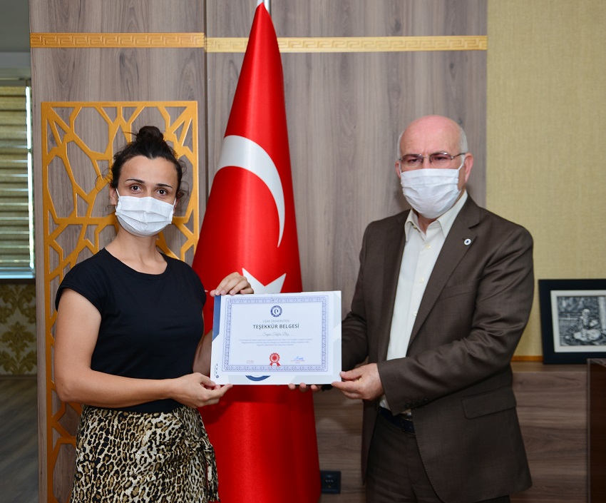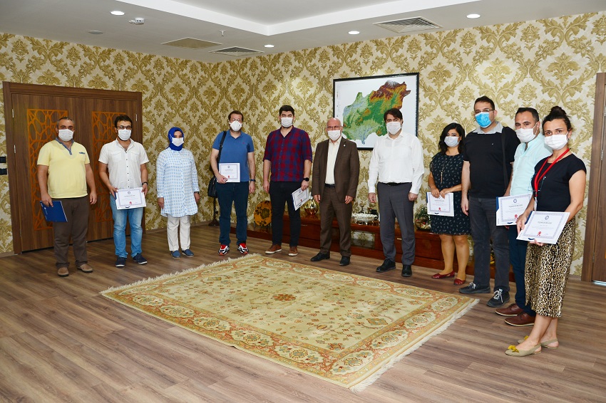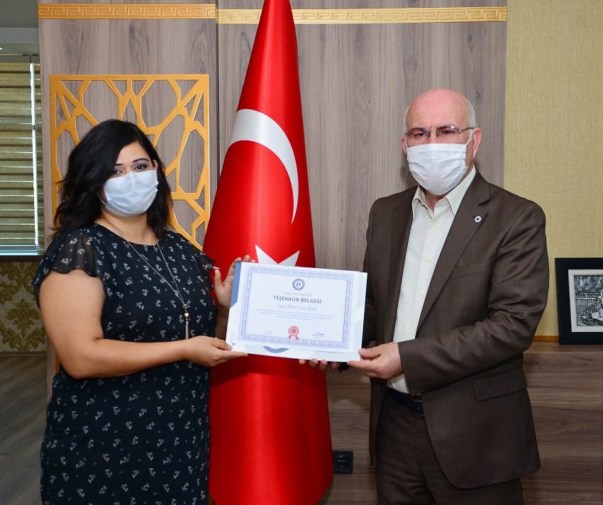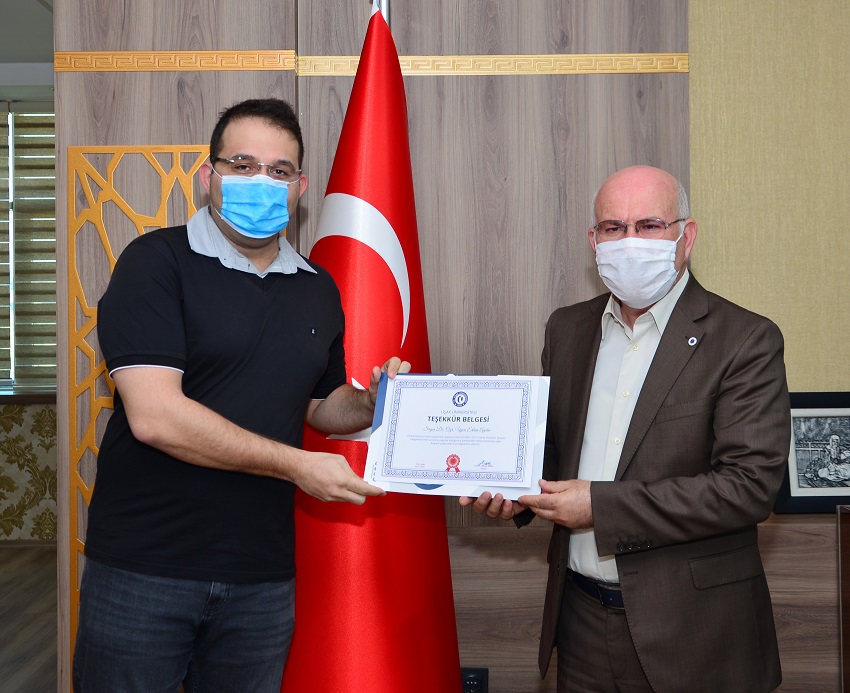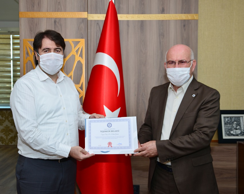 Rektör Yardımcısı Kalite Koordinatörü Prof. Dr. Metin Gümüş, Koordinatör Yardımcısı Dr. Öğr. Üyesi Erhan Aydın, Koordinatör Yardımcısı Öğr. Gör. Kenan Gökçe, Üyeler Dr. Öğr. Üyesi Mustafa Karabacak, Dr. Öğr. Üyesi Serpil Ünal Karaçam, Arş. Gör. Dr. Betül Hayrullahoğlu, Arş. Gör. Dr. Osman Tüzün, Arş. Gör. Emre Şakar, Öğr. Gör. Üzeyir Fidan, Öğr. Gör. Barış Sardoğan, Öğr. Gör. Muazzez Çakır Aydın, Tuğba Boz, İnan Aktaş, Şef Faruk Babakardeş ve Şef Nüket Sevcan Yörük’e teşekkür belgelerini takdim eden Rektör Savaş, “Rekabetin hızla arttığı bir dönemde öncü ve tercih edilebilir olmak için, üniversite olarak her yönden kalitemizi artırmak için çalışıyoruz. Bu hedefi gerçekleştirmemizde Kalite Koordinatörlüğümüz başta olmak üzere üniversitemiz personelinin yaptığı özverili çalışmalar, üniversitemize kalite değerlendirmesinde başarıyı getirdi.” dedi.