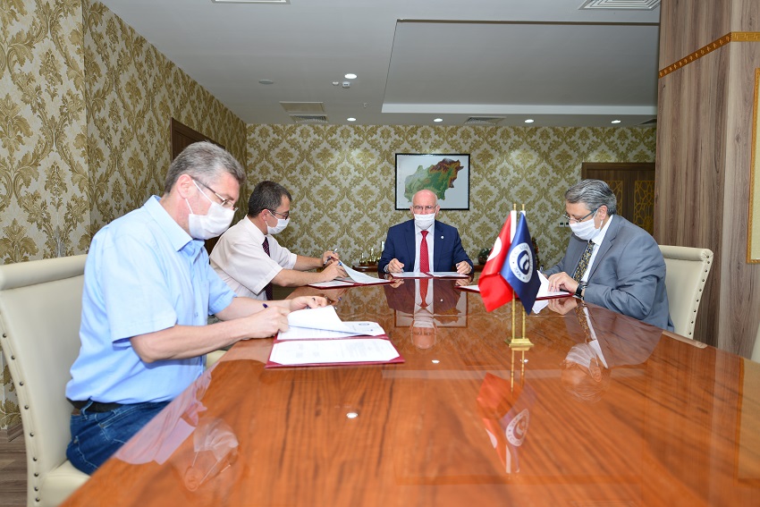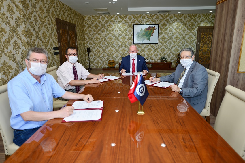 Rector Prof. Dr. Ekrem Savaş, Dean of the Faculty of Medicine Prof. Dr. Ümit Başar Semiz, Dean of the Faculty of Engineering Prof. Dr. Selçuk Samanlı, Director of the Graduate Education Institute Prof. Dr. Murat Kemal Karacan, International Relations Office Coordinator Asst. Prof. Dr. Özgür Tarhan, and Mevlana Institutional Coordinator Asst. Prof. Dr. Tolga Kargın attended the signing ceremony, which was held at the Rectorate Office.