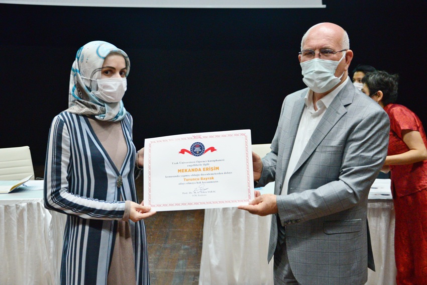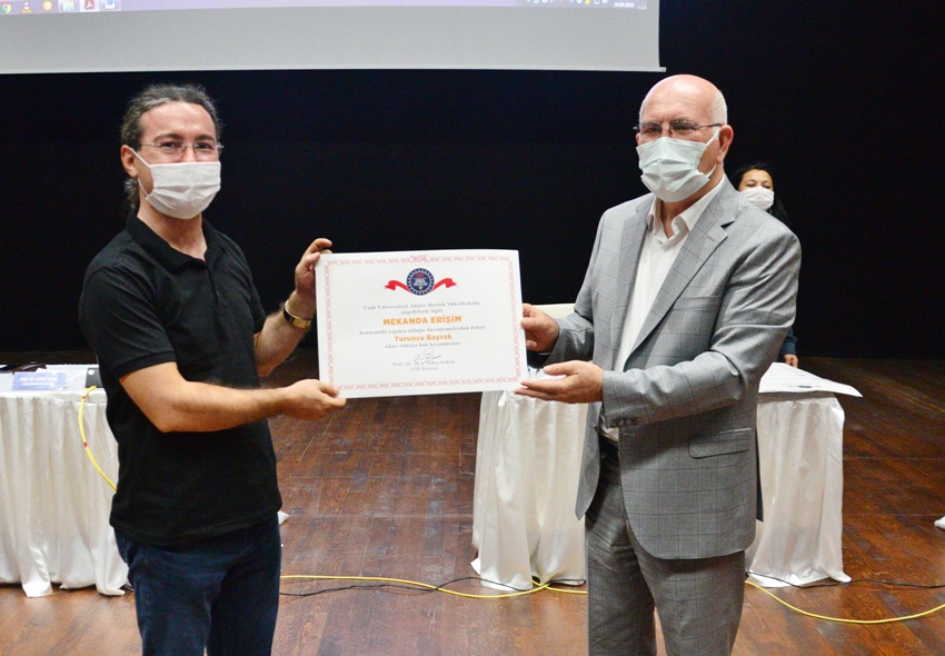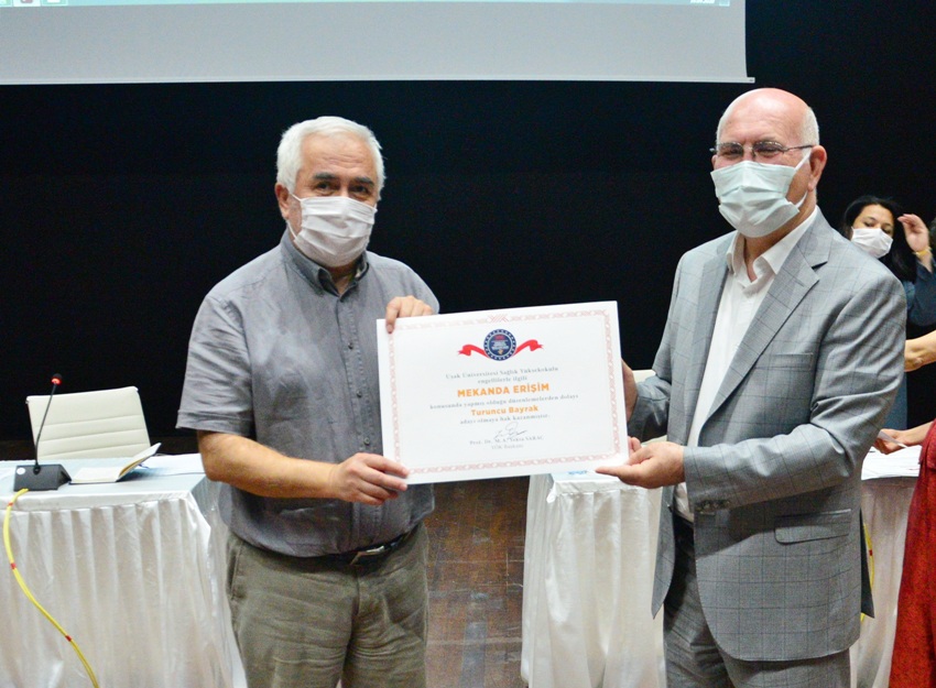 Yeni tip koronavirüs (Kovid-19) tedbirleri kapsamında video konferans yöntemiyle 24 Haziran tarihinde gerçekleşen YÖK 2020 Engelsiz Üniversite Ödüllerini kazanan birimlere ödülleri, Rektör Prof. Dr. Ekrem Savaş tarafından 10 Eylül tarihinde Uşak Üniversitesi Recep Tayyip Erdoğan Kongre ve Kültür Merkezi Büyük Salonda düzenlenen törenle takdim edildi.
