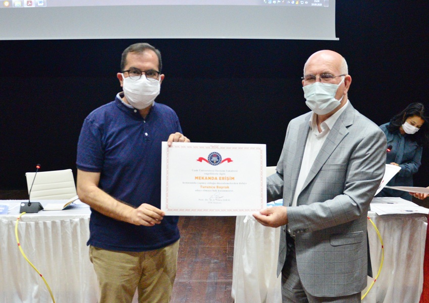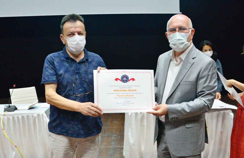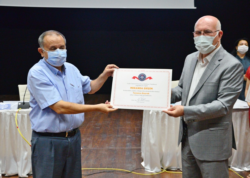 Uşak Üniversitesi Engelsiz Birim Koordinatörlüğü tarafından organize edilen törende, Sosyo-Kültürel Faaliyetlerde Erişilebilirlik (Mavi Bayrak) kategorisinde; Bir Eylül Yerleşkesi, İletişim Fakültesi, Spor Bilimleri Fakültesi ve Eğitim Fakültesi’ne mavi bayrakları ve 13 farklı birimde; Eğitim Fakültesi, Fen-Edebiyat Fakültesi, İktisadi ve İdari Bilimler Fakültesi, İletişim Fakültesi, İslami İlimler Fakültesi, Mühendislik Fakültesi, Spor Bilimleri Fakültesi, Sağlık Bilimleri Fakültesi, Adalet Meslek Yüksekokulu, Teknik Bilimler Meslek Yüksekokulu, Sosyal Bilimler Meslek Yüksekokulu, Prof. Dr. Fuat Sezgin Kütüphanesi ve Rektörlük Binası olmak üzere “Mekânda Erişilebilirlik” Turuncu Bayrak ödülüne aday belgeleri takdim edildi.