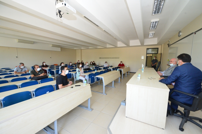 Fakülte binası toplantı salonunda akademik ve idari personel ile bir araya gelen Rektör Savaş, yapılan çalışmalar hakkında bilgi aldı.