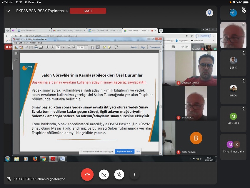 Ölçme, Seçme ve Yerleştirme Merkezi (ÖSYM) tarafından, 15 Kasım 2020 tarihinde yapılacak 2020 Engelli Kamu Personeli Seçme Sınavı (2020-EKPSS) öncesi Uşak Üniversitesi ÖSYM İl Sınav Merkezi Koordinatörlüğü tarafından 11 Kasım 2020 tarihinde sınav koordinasyon kurulu toplantısı gerçekleştirildi.