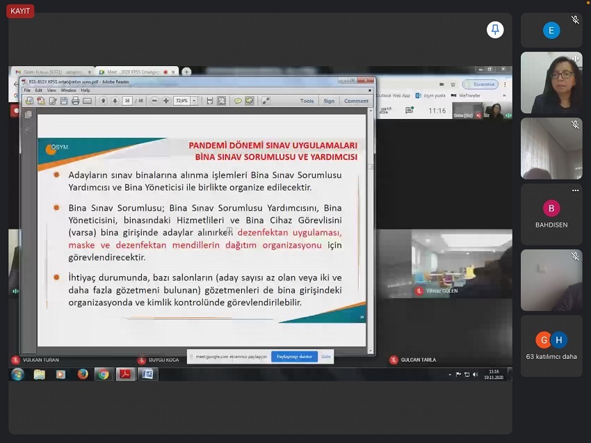 Sınav koordinasyon toplantısının ardından KPSS Ortaöğretim sınavı öncesi, Uşak Üniversitesi ÖSYM İl Sınav Merkezi Koordinatörlüğü tarafından “Görevli Eğitimi” gerçekleştirildi. Sınav Organizasyon Koordinatörü Prof. Dr. Sadiye Tutsak tarafından çevrimiçi verilen eğitim, sınavda görev yapacak Bina Sınav Sorumluları ve Bina Sınav Sorumlusu Yardımcılarına yönelik gerçekleştirildi. Eğitimde sınav günü ve sonrasında alınacak tedbirler ve Kovid-19 nedeniyle alınacak önlemler ile ilgili bilgi verildi.
