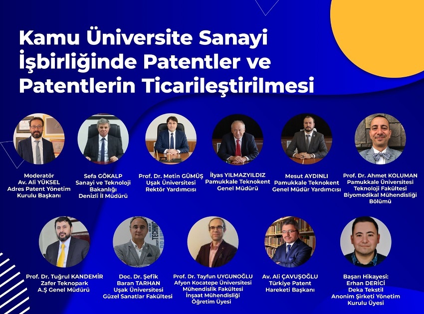 Çevrimiçi gerçekleştirilen panele, Uşak Üniversitesi Rektör Yardımcısı Prof. Dr. Metin Gümüş, Denizli Bilim Sanayi ve Teknoloji İl Müdürü Sefa Gökalp, Pamukkale Teknokent Genel Müdürü İlyas Yılmazyıldız, Zafer Teknopark A.Ş. Genel Müdürü Prof. Dr. Tuğrul Kandemir, Uşak Üniversitesi Güzel Sanatlar Fakültesi Öğretim Üyesi ve Uşak Üniversitesi Deri, Tekstil ve Seramik (DTS) Tasarım ve araştırma Merkez Müdürü Doç. Dr. Şefik Baran Tarhan, Pamukkale Teknokent Genel Müdür Yardımcısı Mesut Aydınlı, Pamukkale Üniversitesi Biyomedikal Mühendisliği Öğretim Üyesi Ahmet Koluman, Afyon Kocatepe Üniversitesi Mühendislik Fakültesi İnşaat Mühendisliği Öğretim Üyesi Tayfun Uygunoğlu, Deka Tekstil A.Ş. Yönetim Kurulu Üyesi Erhan Derici ve Türkiye Patent Hareketi Başkanı Av. Ali Çavuşoğlu katıldı.