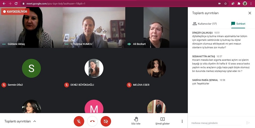 Moderatörlüğünü Öğr. Gör. S. Yağmur Kumcu’nun yaptığı konferansa TOBB Sigorta Acenteleri İcra Kurulu Meclis Üyesi Şermin Metin, Sigorta Eksperi Güldane Aktaş ve Ali Bozkurt konuşmacı olarak katıldı.