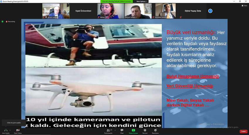 Uşak Üniversitesi Sürekli Eğitim Araştırma ve Uygulama Merkezi (USEM) tarafından “Muhasebe ve Maliye Uygulamalarının Gelecek Vizyonu” adlı çevrimiçi seminer gerçekleştirildi. Seminere Uşak Üniversitesi Rektörü Prof. Dr. Ekrem Savaş, USEM Müdürü Dr. Öğr. Üyesi Fatma Akyüz, Uşak SMMO Başkanı Mustafa Mıdık, akademisyenler, idari personel ve öğrenciler katıldı.
