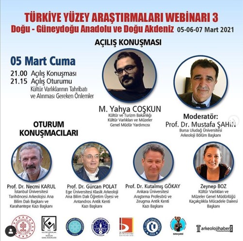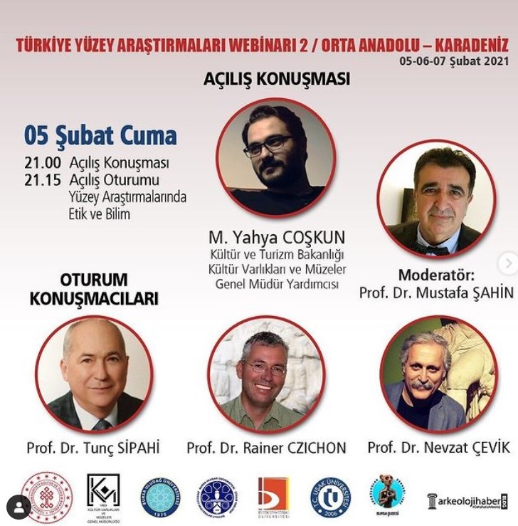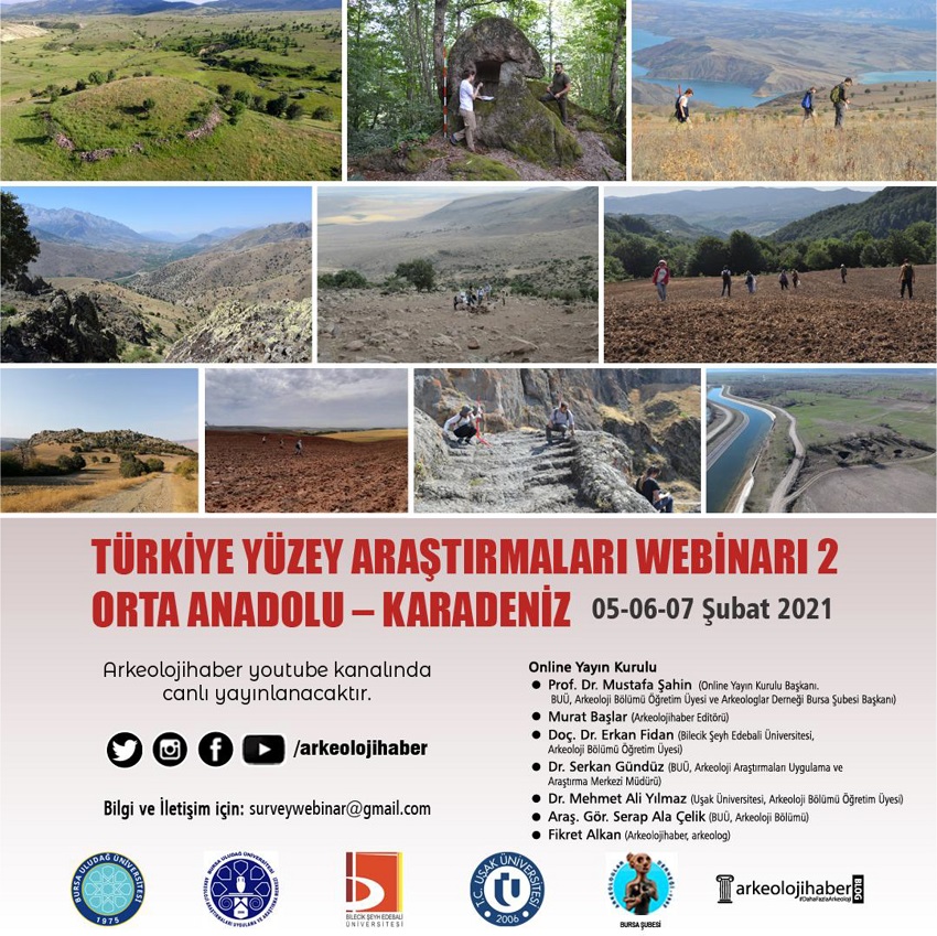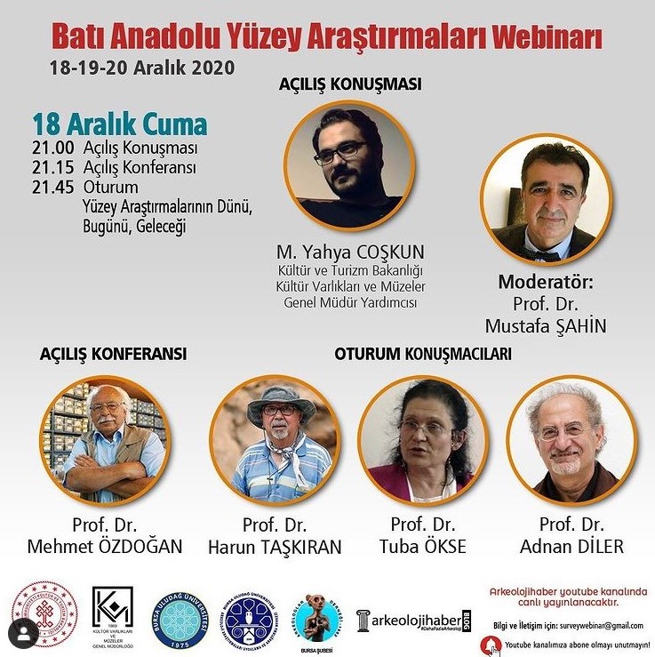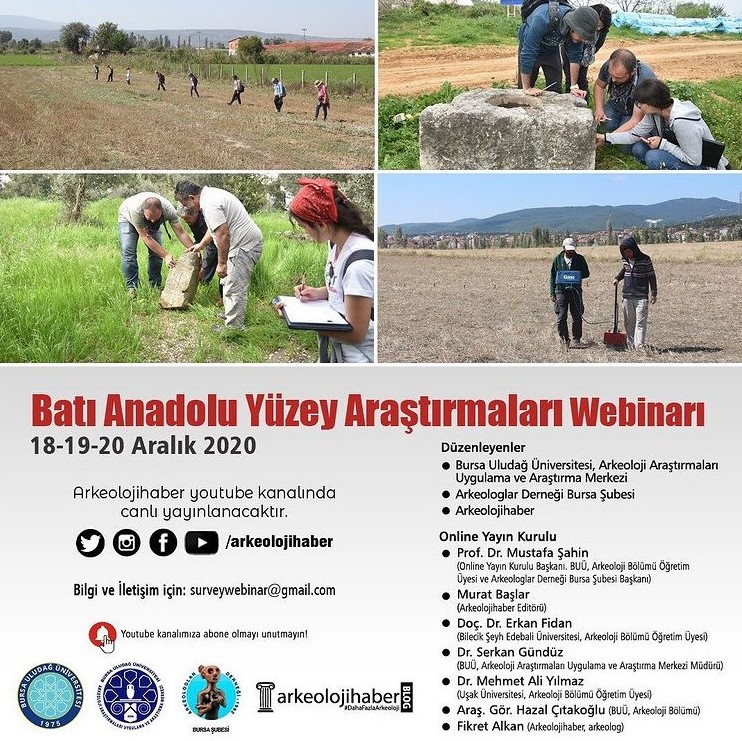 Tüm dünyayı etkisi altına alan Covid-19 salgını nedeniyle sempozyum, kongre, çalıştay vb. organizasyonların sanal ortama taşındığı günümüz dünyasında Kültür ve Turizm Bakanlığı Kültür Varlıkları ve Müzeler Genel Müdürlüğü’nün desteği, Uşak Üniversitesi, Uludağ Üniversitesi, Bilecik Şeyh Edebali Üniversitesi ve Arkeolojihaber iş birliğinde “Türkiye Yüzey Araştırmaları” başlıklı çevrimiçi webinarlar dizisi düzenleniyor.
