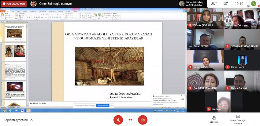 Moderatörlüğünü Öğr. Gör. Senay Şeyranlı’nın üstlendiği konferansa, konuşmacı olarak Akdeniz Üniversitesi Güzel Sanatlar Geleneksel Türk Sanatları Bölümü öğretim üyesi Doç. Dr. Ömer Zaimoğlu katıldı.