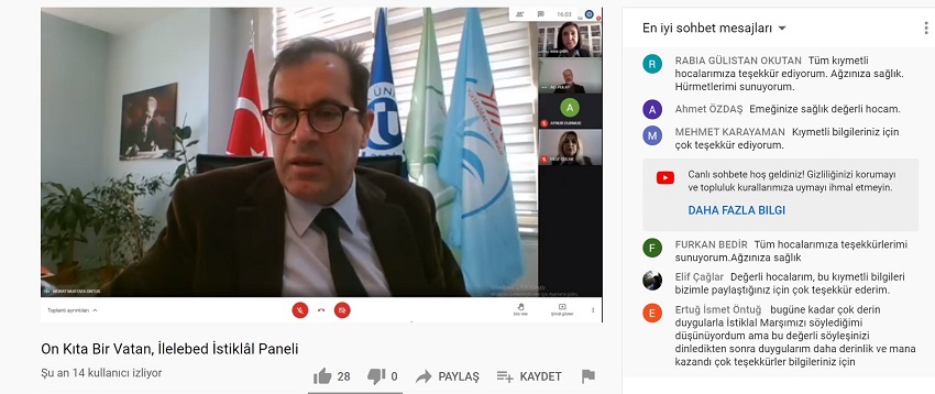 Uşak Üniversitesi tarafından İstiklal Marşı’nın kabulünün 100. Yılı ve Mehmet Akif Ersoy’u Anma günü etkinlikleri kapsamında Moderatörlüğünü İletişim Fakültesi Dekanı Prof. Dr. Mustafa Murat Öntuğ’un yaptığı ‘‘On Kıta Bir Vatan, İlelebed İstiklâl’’ adlı panel gerçekleştirildi.