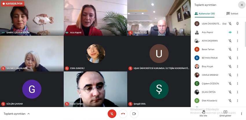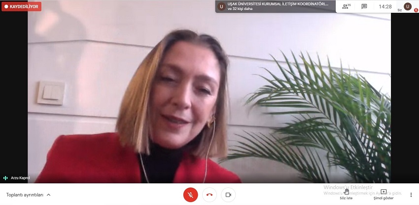 Uşak Üniversitesi YouTube kanalından canlı yayınlanan etkinlikte Rektör Prof. Dr. Ekrem Savaş katılımlarından dolayı Arzu Kaprol’a teşekkür ederek, üniversite olarak kendilerini pandemi sonrası yüz yüze Uşak’ta ağırlamaktan mutluluk duyacaklarını belirtti.