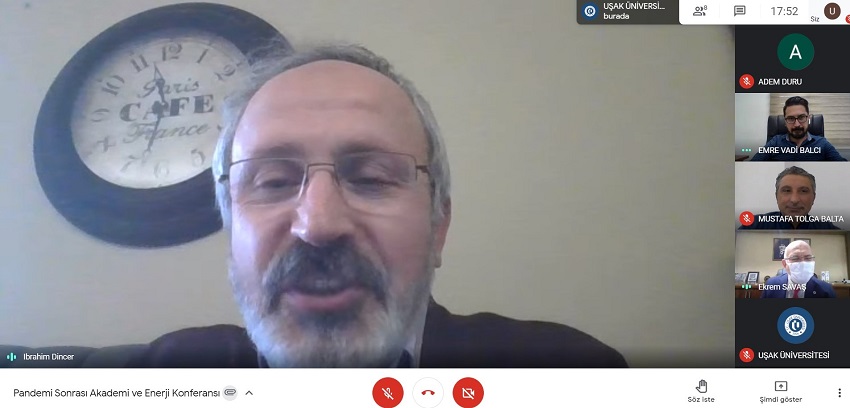 Konferansın açılışında konuşan Uşak Üniversitesi Rektörü Prof. Dr. Ekrem Savaş, üniversite olarak konferanslara ve panellere, pandemi döneminde de hız kesmeden çevrimiçi olarak devam ettiklerini belirtti. Alanında dünyanın sayılı akademisyenlerinden biri olan TÜBA Enerji Çalışma Grubu Yürütücüsü Prof. Dr. İbrahim Dinçer’i çevrimiçi de olsa ağırlamaktan duydukları mutluluğu dile getiren Rektör Savaş, “Hem akademisyenlerimiz hem de öğrencilerimizin hocamızın vereceği bilgilerden, birikimlerinden istifade edeceklerdir. En kısa zamanda pandeminin sona ermesini ve yeniden yüz yüze etkinliklerde bir arada olmayı diliyorum. Hocamıza katılımlarından dolayı teşekkür ediyorum.” dedi.